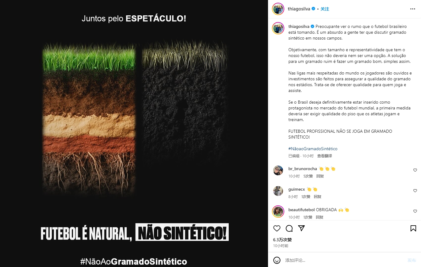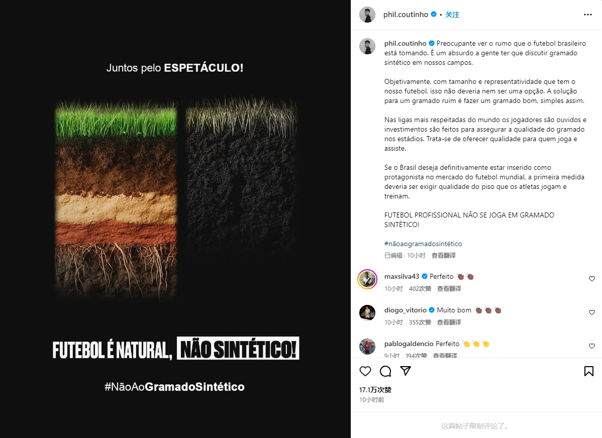 02月19日訊 內(nèi)馬爾、庫蒂尼奧、蒂亞戈-席爾瓦等人社媒發(fā)布相同的長文,對巴西足球球場使用人工草皮進(jìn)行批評。