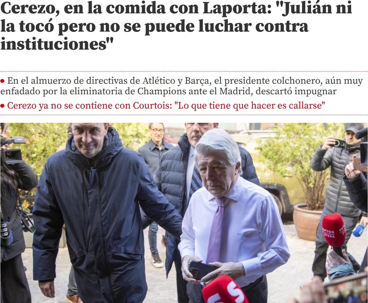 馬競主席塞雷佐再次談到了周中歐冠阿爾瓦雷斯被判無效的點球,塞雷佐斬釘截鐵地表示這球應(yīng)算有效。